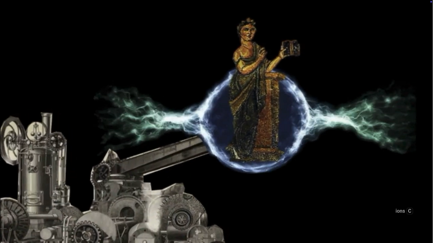 (The central figure is a depiction of Clio, the Muse of history, and the engine on the left symbolizes “dynamics” — looks like a dynamo. Not sure what the halo around Clio does.)