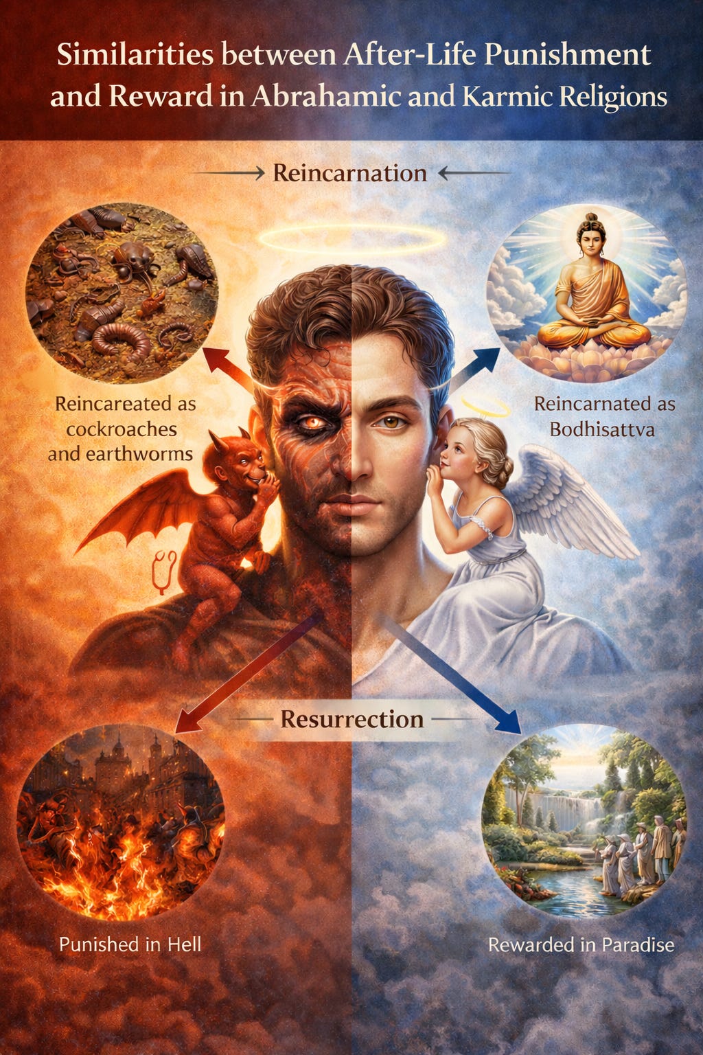 On one hand, it is true that there is a deep difference between the religious landscapes in Eastern and Western ends of Afro-Eurasia. In the West, we are very familiar with the idea of an all-powerful and all-knowing God, who created the universe and punishes human transgressions.