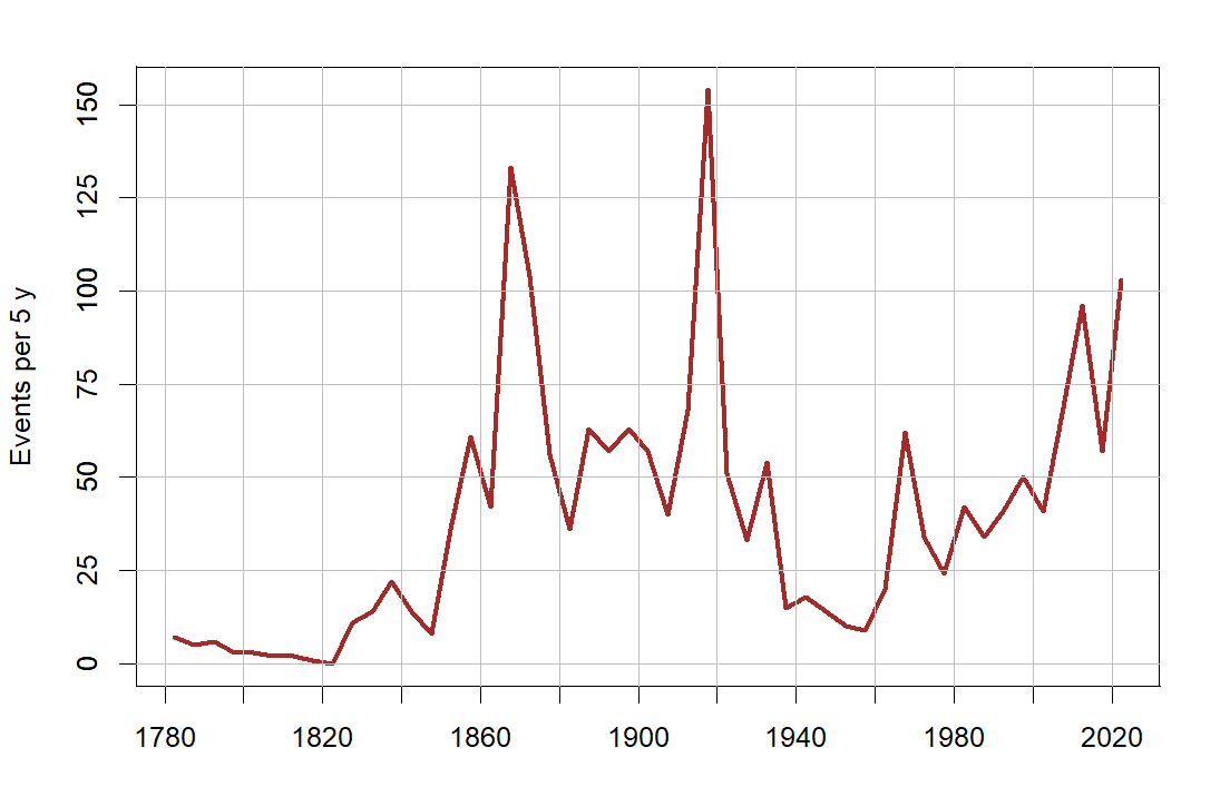 For the 2020s, I proposed that the expectation from the theory is that there will be more than 100 events per 5 years.